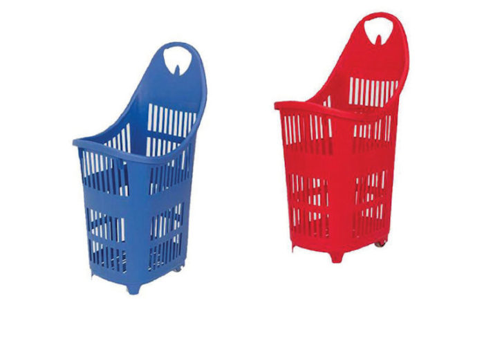 Panier d’achats à roulettes fabriqué d’une seule pièce.
